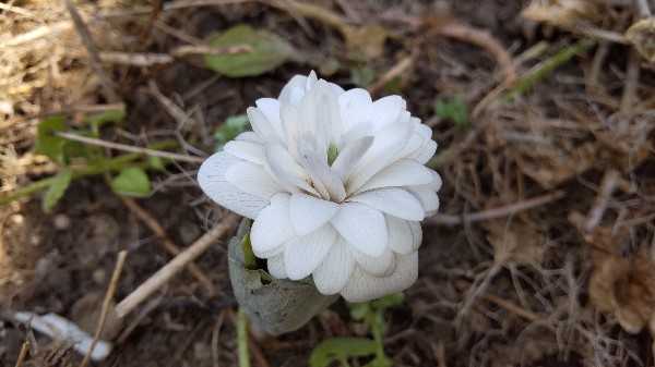 何もないところに真っ白な花。