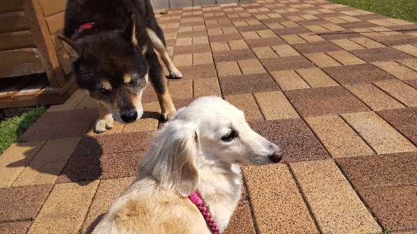 今朝のお散歩、マルちゃんが小屋から出てたのでご挨拶。