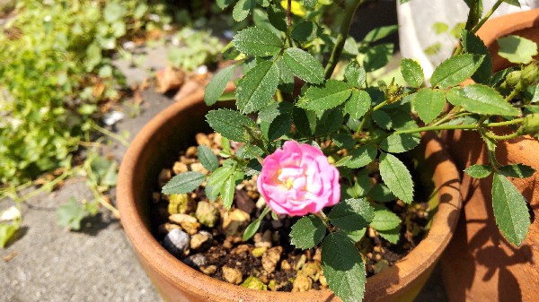 あ、メルカリでバラの挿し木苗を購入したら、オマケで入れてくれたミニバラも入ってて、可愛い花が咲きました。