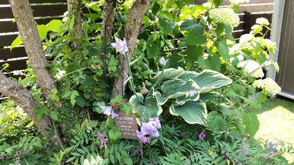 ドッグラン側のクレマチス エミリアプラターも、ホスタにも花です♪