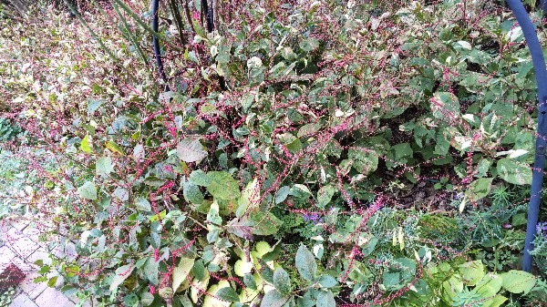 あら!ヘンリー蔦が、裏のお家の方にまで伸びてってる。