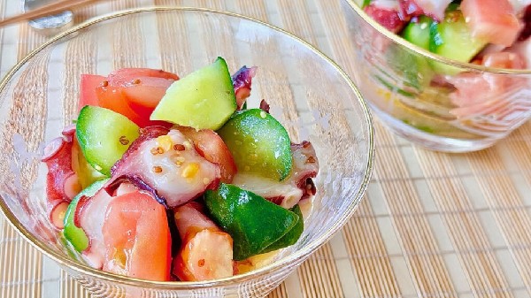 美味しくないタコの刺身があったので、タコのピリ辛サラダにしました!