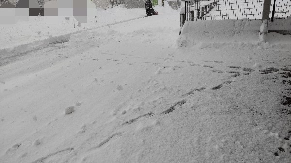 だんなさん、隣の空き地の前も除雪機で雪かきしてます。