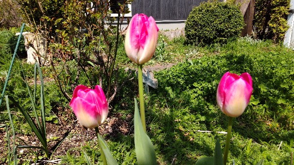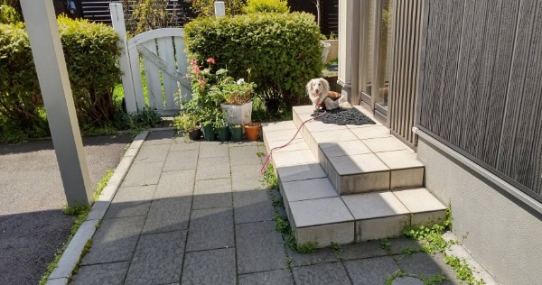 庭の目立つ雑草むしりと、お向かいの庭からはみ出たところに出ているタンポポをむしりました。