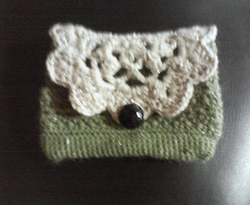 この緑のラメ入り毛糸お気に入りだったんですけど、お店に行ったらもう廃盤で、ラスト1玉でした1玉で編めるポーチを作りました蓋の部分がお気に入りです