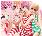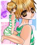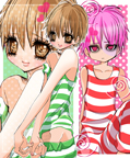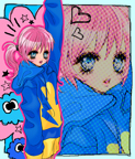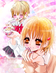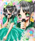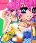 上のイラストの、大きいバージョンを別サイトにて展示しております。是非ご覧になって下さいね。お手本にしたのは、popten5月号の『みにゃとっち』ちゃんのページです。アラレちゃんみたいな口の開き方が、ホントに可愛い。霧野君を描く際、この子が今一番イメージに近いです。長い睫と、大きな瞳が可愛い…