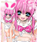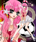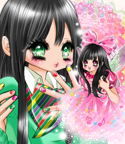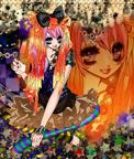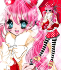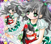 上のイラストの、大きいバージョンを別サイトにて展示しております。是非ご覧になって下さいね。昔の小悪魔agehaのりんちゃんを見て描きました。もっと可愛く描いてあげたかったです
