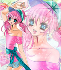 上のイラストの、大きいバージョンを別サイトにて展示しております。是非ご覧になって下さいね。お手本にしたのは、popteenの読者モデル、ぴかりんです。あぁ可愛いー背景に使用したレースの枠の画像comiru:..:*diaryありがとうございました