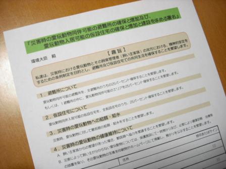 愛玩動物入居可能の仮設住宅の確保と増加と建設を求める署名』