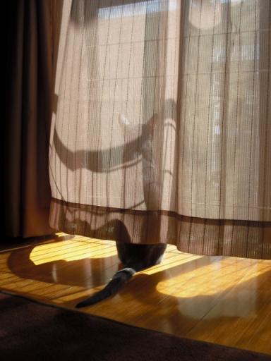 ちょっと夏場は暑すぎるのでレースのカーテンは色付きです。