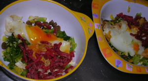 今日は 今までで 一番食いつきがよかったですドライフードカブの葉、白菜、とうもろこしの刻んだもの、豆腐をごま油で炒める目玉焼きを2等分馬肉のひき肉を生で上記を食べる前に混ぜ混ぜしてあげました。馬肉の生は初めてTRYしましたが結構いけるらしい!?