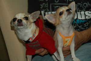 ワンコ友達のおうちにいきました。生後3ヶ月のチワワちゃんと遊んできましたうちのこ(左側)がでかく見える。。。