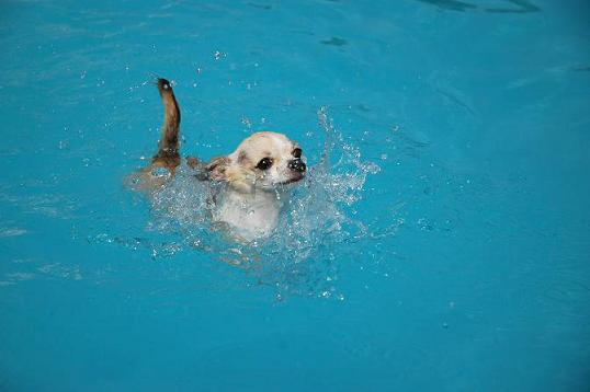 女10人、犬16匹(プードル14:チワワ2)で伊豆へ行ってきました。私が最年少で、上は+14歳まで幅広い年齢層。女のたびって面白い。食べて&食べて&食べて&話&話&話こんなかんじでしょうか。一応観光もするんですけどね(笑1日目は プールがメインでした。プードルよりも チワワは泳ぎがうまいのですが・・今回連れて行った我がムスメ(チワワ)がきっと16匹のなかで 一番上手だったでしょう~♪(低レベルの争い)そんなムスメの勇姿!