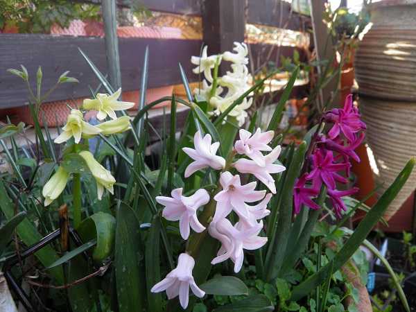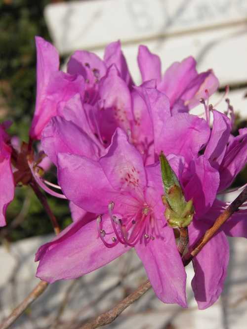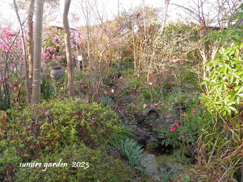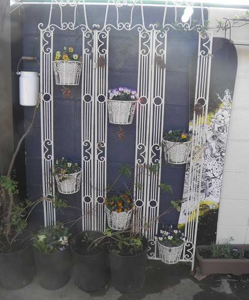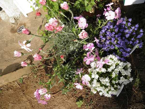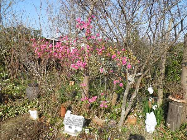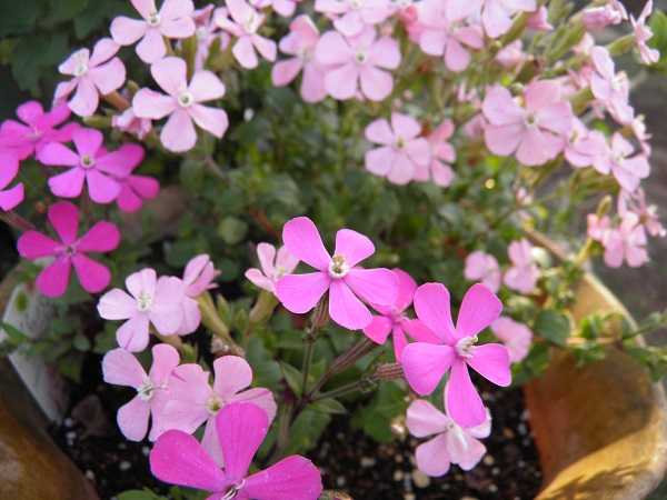 手前に写る濃ピンクの花がピンクパンサー(つる小桜)です