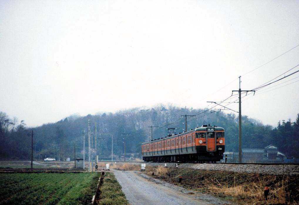 昭和62年3月19日 岩舟~大平下間にて 115系4連 普通列車