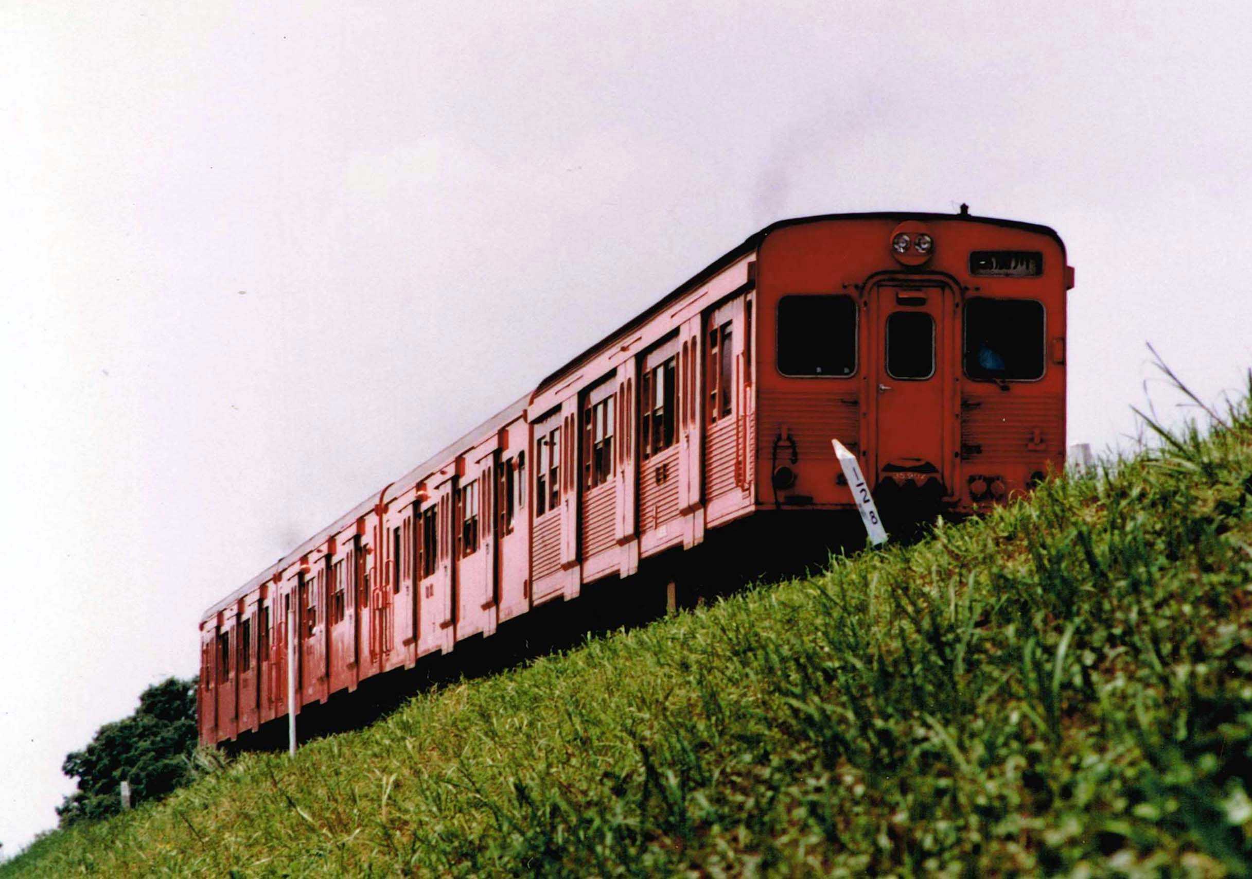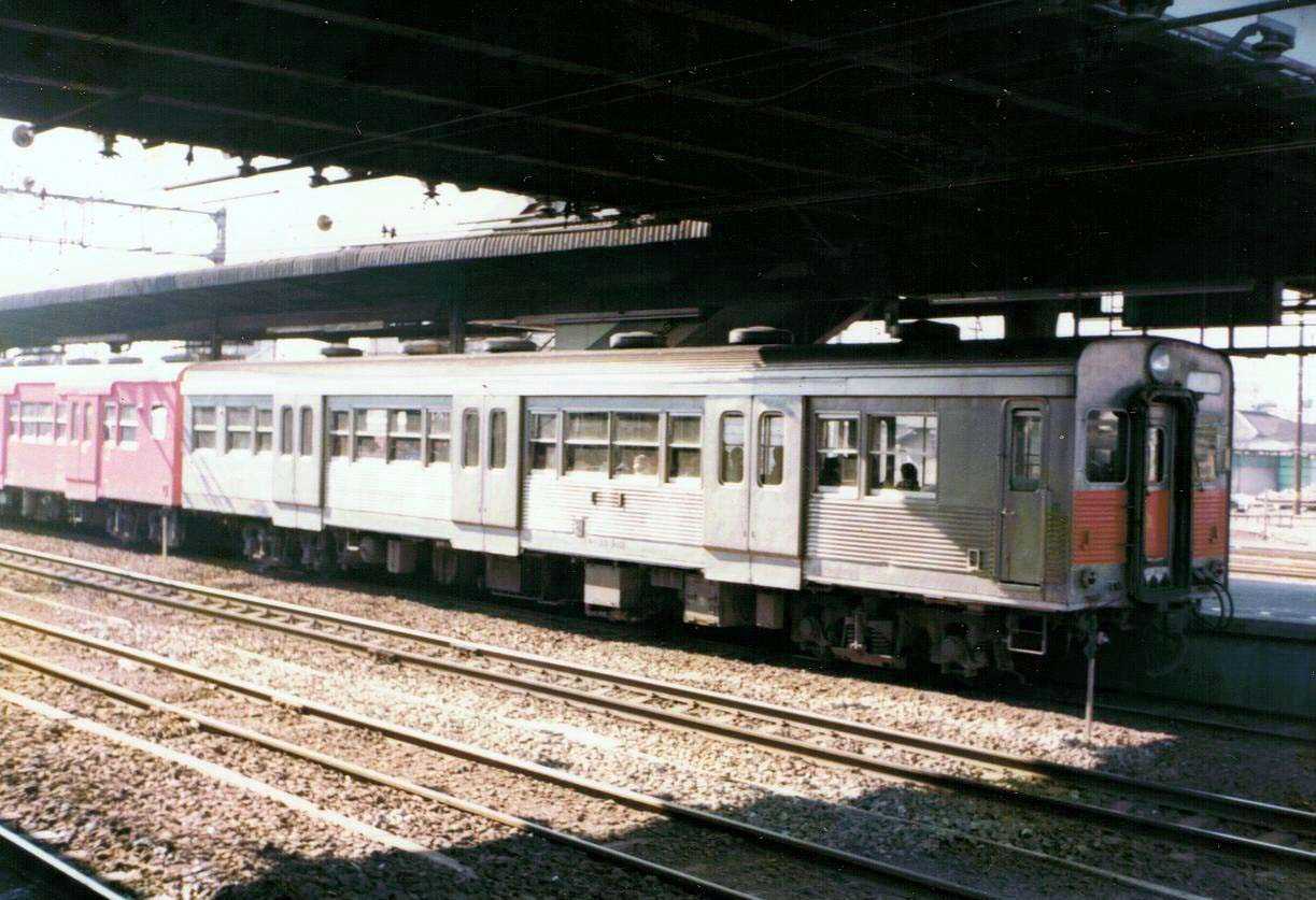 数年は銀色に警戒色のまま運用されていましたが、昭和52年頃から実施された塗装合理化に際し、何故か塗装不要な900番台も他の鋼製車と同様に朱色4号に塗装されることになってしまいました。
