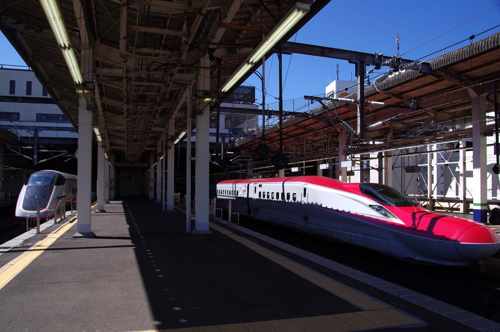 別の写真を撮っていたら偶然にも隣のホームにE3系が入って来たので慌てて撮影したもの。それまで併結相手はE2系のみでしたので、E5系との併結シーンも初めて見ました。