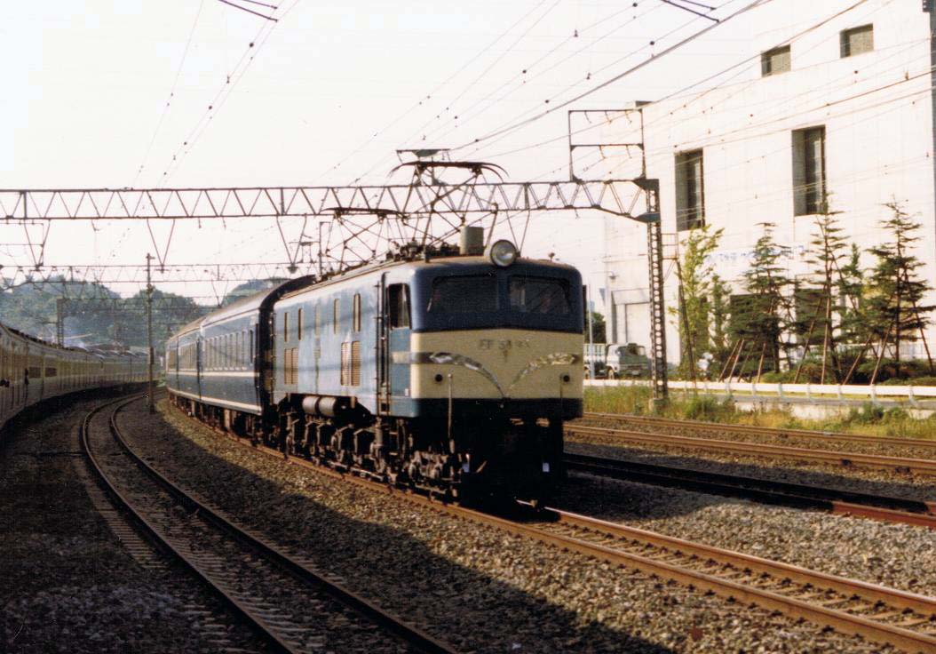 当時、急行「銀河」は宮原区のEF58が担当していましたので、美しい姿のEF58が20系を牽引する姿を見ることができました。(一部に美しくないヤツもいましたが・・・。)