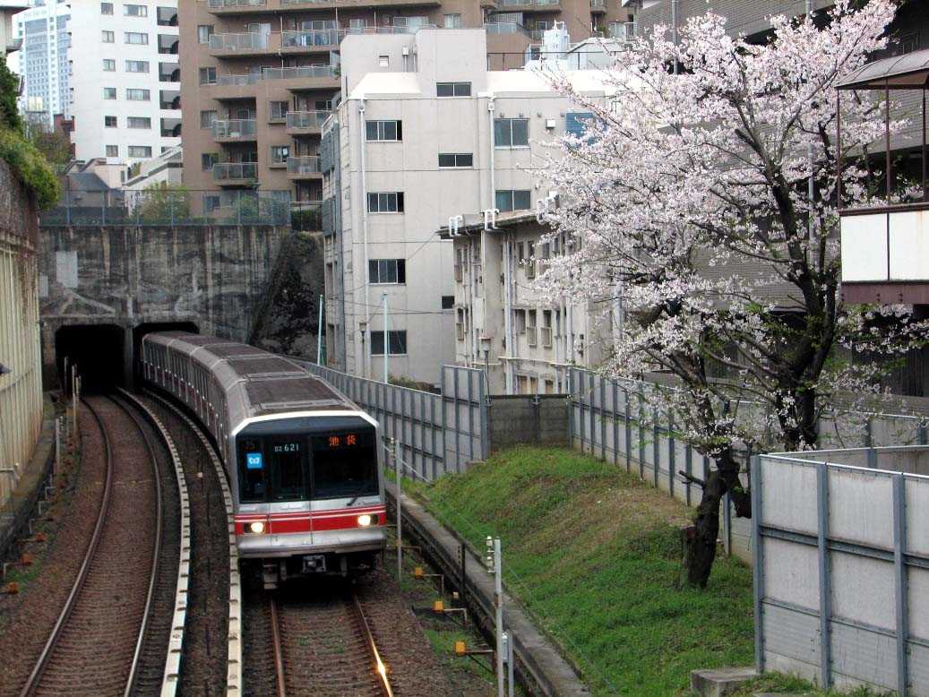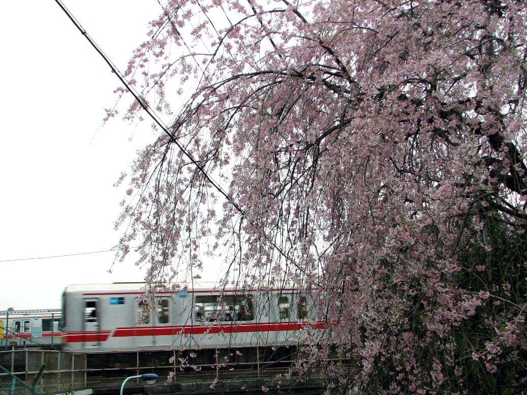 後楽園の駅に近い側で、またトンネルがあるんですね。線路際に生えた1本のソメイヨシノがアクセント。この辺りは、かなり桜の木を植えている学校やお寺が多いのですが、線路のあるところに掛かっていないのが残念ですね。