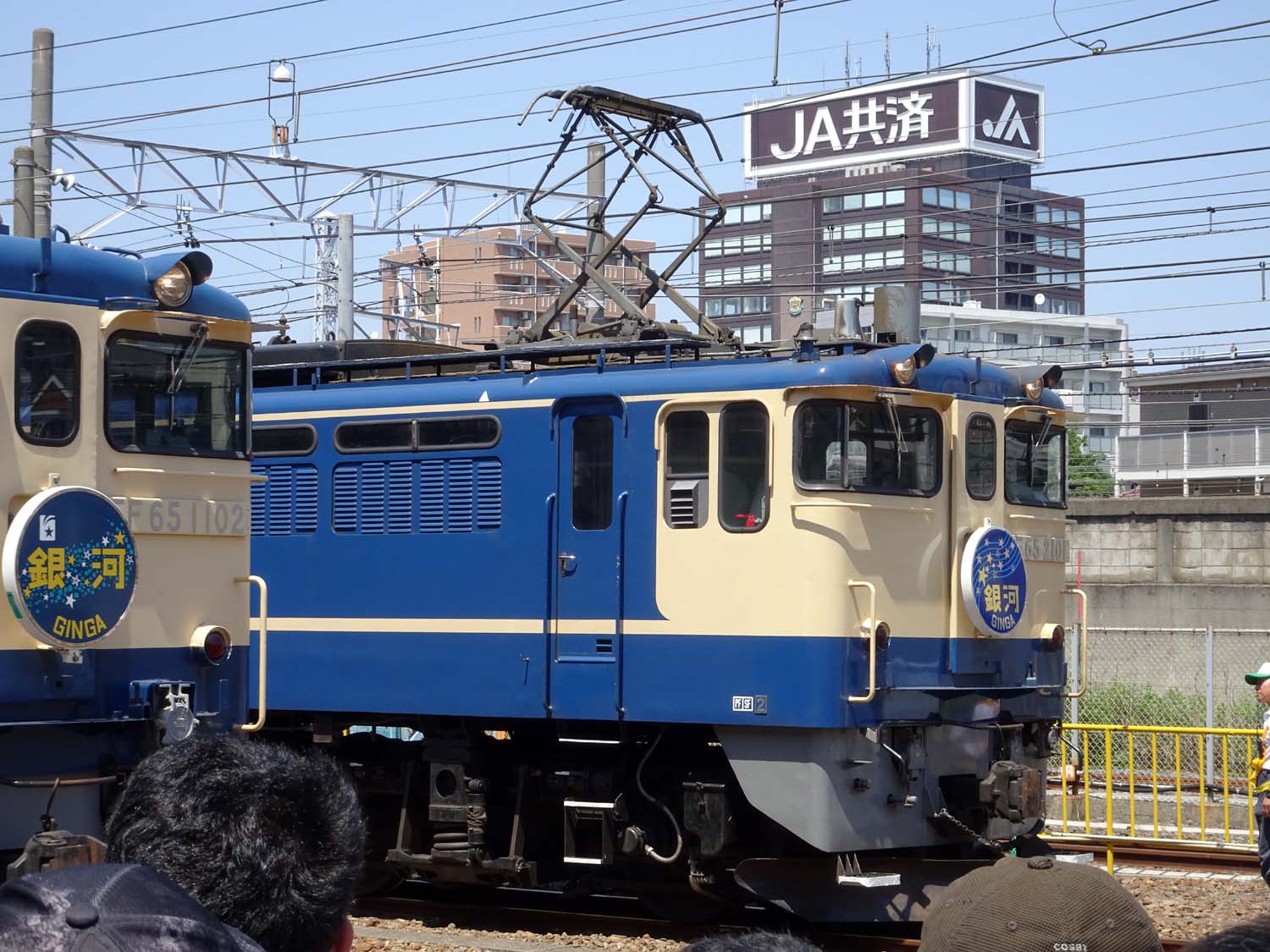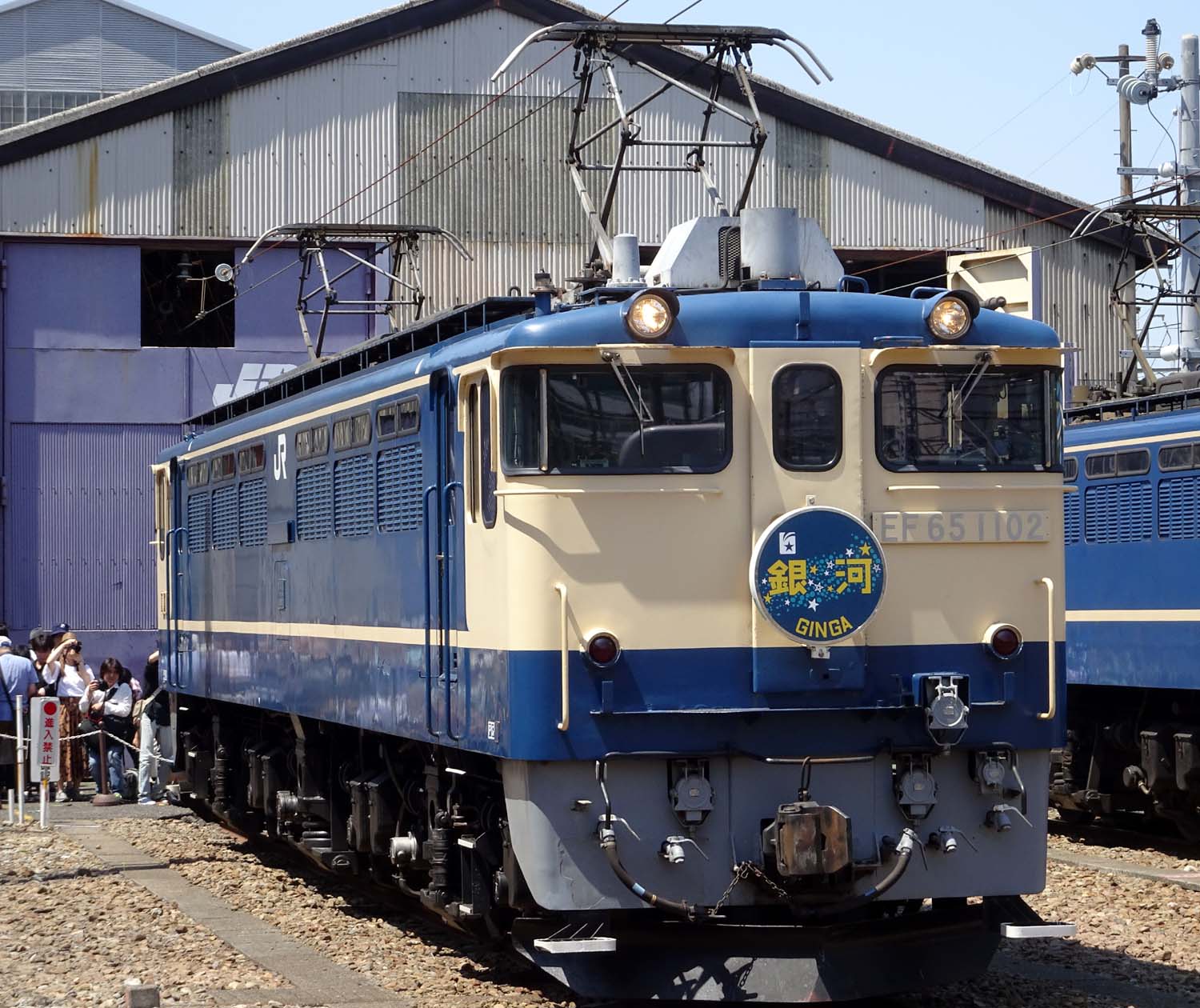 「鉄道のまち 大宮鉄道ふれあいフェア」で展示された2社のPFに2種類の「銀河」ヘッドマークを取り付けて展示。EF651102&EF652101。
