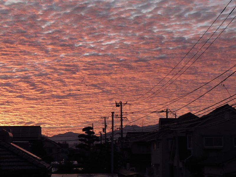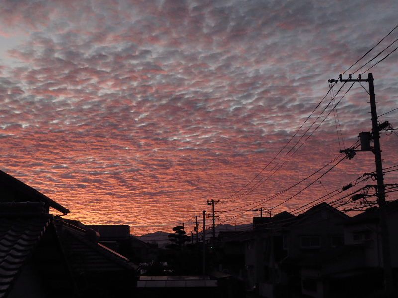 この様な綺麗な朝焼けは月に何回もありません台風15号の影響でしょう