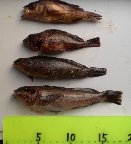 おはようございます。1月23日の日記です。朝から来客は多いですが釣果の確認と潮見表入手のお客様が多いですネ(笑)天気予報をにらみながら釣行を模索しておられる方が多いですがやはり今の時期は魚の活性も思わしくなく、釣れる魚も限定されるので足踏みしてしまいますよね。今日は午前中に塩水を汲みに海岸に出向きましたが海岸には釣り人はお一人だけ。曇り空で風、波は無いですが寒さはさほど感じませんね。で、釣果情報ですが後日談の方が多いです。持ちこんで写真を撮るまでもないと言うのが正直な感想ですが根魚が数匹の釣果が多いです。写真を撮らせて頂いたのは2名様。神戸のIさん探り、浮き釣りでアイナメ、ガシラ、メバルです。小型が多かったそうですがそれらはリリース。餌はシラサ、オキアミ、青虫を使い分けたそうです。底の荒れた場所で竿を出してください。。。。との言葉です。続いては投げでカレイ狙いは尼崎のFさん大きなアタリで引きも十分。これは大物と信じて釣り上げたのは30センチを超えるフグ。丁重に海に返って貰った次の投入で本日の唯一のカレイ。サイズ的には不満ですが孫の食べ始めの肴にするとお持ち帰りです。小さな一匹でもドラマがあります。Fさん、私と同じで爺バカですね~。今日は京都からお二人が出かけられています。釣れたら店に寄ってくださいとお願いしてますのでカメラを用意してお待ちしております。では、インフルエンザ、ノロウイルスが流行っている様ですので注意してくださいませ。