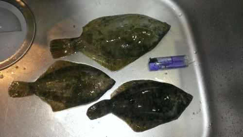 おはようございます。3月31日。25年度もおしまいです。そして明日から消費税8%。買い物忘れ、期限切れのチケットなどお忘れなき様にしてください。綿には何も買いませんが。。。今日は昨日と打って変わって好天に恵まれてます。学生さんがグループで春休みを謳歌されてます。そして女子のグループも来られてます。記念に残る魚が釣れます様に祈っておりますさて、釣果情報ですが昨日は雨でお客様はいませんでした。そこで29日の釣行でカレイを3匹ゲットされた方からメッセージと写真を頂いてますのでご紹介します。参考になる言葉もありますので是非、実践してもらえれば幸いです。***********************************************昨日29日、10時前にマムシと青イソメを買いに伺った親子連れです。あの後、心配していた天気にも恵まれ、14時まで楽しむ事が出来ました。気温も暑い程で、息子は肌着になっていました。釣果ですが昼前の下げ止まりまで30センチもある巨大なヒガンフグ一匹のみで、息子にも「今日はのんびりしに来たんだよ」と諦めムードだったのですが・・・潮が動き出した昼過ぎ、27、20、21センチと立て続けに釣れました。時間にして40分程でしたが、親子で大興奮でした。また須磨に来ようね、と約束したので、その時はまたお世話になります。ありがとうございました。*************************************************では、今日も良き一日をお過ごしください。
