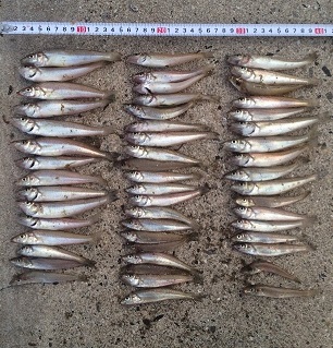 おはようございます。7月5日の釣果速報です。休日にしては少な目の人出ですがそれでもキス、アジを求めて大勢の方がお見えになってます。早々に釣果をお持ち下さいましたのでご紹介します。まずは0-ken1さん小さ目の一本針で防波堤の中ほどからの探り釣りのスタイルで釣りました。ほとんど針を飲み込んでいるほど活性が良かったそうです。今夜の食卓に新鮮な魚でかざるんですよね。餌は石ゴカイでした。そして大阪から来られた二人組の釣果です。(お名前は仰りませんでした)ピンはリリースしてもこれだけ釣れたのでブログのネタにしてくださいとお持込くださいました。餌は青虫、石ゴカイとも差はなかった様です。数はやはり数えませんでした。もっとしっかり仕事をしろとお叱りを受けますけど。。。そして旬の豆アジはイワシ、サバ混じりで回遊してくれてます。写真はサバ、イワシをリリース後です。釣人は神戸のKさん。最後は豊中のNさん、Fさん、Yさんの皆様アジ、イワシ、サバ一部の写真だけです。全員集合で大漁の魚を前に写ってくださいました。お忙しい中、釣果をお持ち下さいました皆様、ありがとうございました。以上、須磨海岸の釣果速報です。