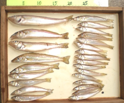 おはようございます。7月28日の日記です。まずはお詫びです。私のミスで土曜日の滋賀のTさんの釣果のアップを忘れていました。遅ばせながら記載させて頂きます。Tさん、本当に申し訳けありませんでした。釣果はキス45匹、他です。Tさんから丁寧なメッセージを頂いておりますのでご紹介します。***************************延べ竿5.4m1本で キス 45匹 テンコチ 4匹 ハゼ 12匹 でした。チャリコがとっても多くて、リリースしただけで20匹以上。イワシのボイルを昼過ぎに確認しました。サビキがあればイワシもいっぱいになったはず。寝屋川のHさんには出会えなかったけれど、釣りキチ三ちゃんとは途中合流して、情報交換。マゴチも見せてもらいました。数釣りなら本当に近場、型狙いなら100m以上の遠投と言う感じですね。***************************続いて寝屋川のHさんの釣果ですキス19センチを頭に25匹でした。いつもの事ながら小型の針かかりの良いのはリリースしての結果です。続いて東灘のアイさんです。21cmを頭に良型が揃ってます。ベラが好物でベラ狙いで某ポイントでキスが釣れたそうです。キスファンにとっては羨ましい限りです。最後はアジ、サバですが朝はアジが多かったのですが途中からサバ。回遊魚を釣るのは相手任せで難しいですね。写真は撮れてなくてごめんなさい。今日は定休日で11時までの営業ですので宜しくお願いいたします