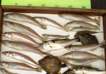 おはようございます。9月30日の日記です。サビキも投げ釣りも五目釣りの様子でアジ、キス、ベラ、カワハギ、チャリコ、コチが釣れて休日は大賑わいの須磨海岸です。。夜釣りには安定して良型のアジ、太刀魚、アナゴ、アオリイカを狙うアングラーがおられます。又、カレイが顔を出し始めましたので待ちわびていた方の出番が近づいてます。餌取りは多いですがカレイのアタリと重量感は言い知れぬ緊張感を味わえますね。では、一昨日の釣果写真です。垂水の松村様ご夫婦。大物狙いで気合いを入れて来られ狙い通りに22センチのチャリコ(真鯛の幼魚)、23センチのカレイをゲットされました。それ以外にも沢山釣られてましたが写真はこの二匹で十分。願いは叶うものだと実感しました。続いては滋賀のTさんご覧の通りの大漁です。愛竿を駆使しての釣果ですがキスの数がもう少し、多ければ申し分ないのだがとの談ピンギスは狙えば釣れますが型が欲しかったのでピンギスのポイントは避けたそうですキスは大阪のIさん青虫のエサでチョイ投げの釣果です。2ケ所を探っての成果だそうです。そして超遠投をモットーとしている箕面の釣りキチ三ちゃんの釣果ですチョイ投げでキスが釣れててもご自身の遠投ポリシーを曲げず貫ぬく方です。そこそこの型揃いですネ。チャリコのエサ取りが今年は多そうです。アジは連日の釣行で夜、6時過ぎから8時までの間に30匹。25cm程の良型は2匹。須磨のYさんの釣果です。では、今日も良き一日でありますように。