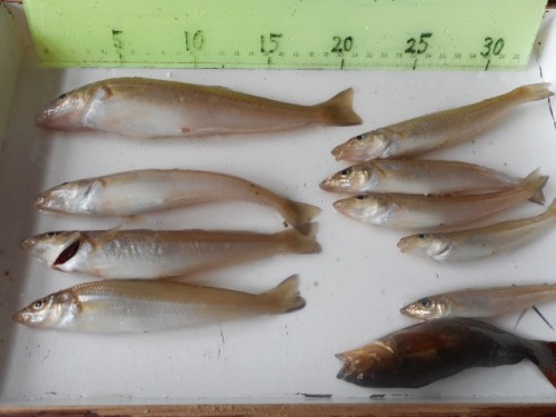吉川釣具店です。おはようございます。今日は朝から(深夜から)かなり激しい雨が降り続いていました。8時現在、小ぶりになってきましたので雨が止むのも時間の問題でしょう。昨日は午後、自転車で20分の所にある、フィットネスクラブで運動してきました。前にも書きましたがジム通いは心筋梗塞、糖尿病の運動療法の一環です。この度、元・会社の仲間が新たに入会したので同行する目的もありましたが昨日はヨガとバイクを実践。ヨガではゆったりと腹式呼吸でといわれていますが気持ちと体は別物。『ウツ!』『ハツ!』と感嘆符の呼吸ばかり。美人インストラクターも苦笑してました(笑)そんな事で明日からも頑張らないで諦めない精神でやっていくとします。釣果情報です。豆アジが朝から釣れ続いていました。3桁釣りもおられ、6時から釣り始めた方は300匹釣った人もいたとか。実数はともかく、それだけ釣れたということでしょう。今日の雨でさらに活性されると思いますので是非、豆アジをご賞味ください。写真は須磨のIさんそしてキスも好調です。神戸のK川様の釣果です。サイズの大きいのは中投で他はチョイ投げです。写真以外にもピンギスは山ほど釣れたそうですがリリース。餌は石ゴカイ。針は流線の6号。これからサイズアップしていくので楽しみも増えてきますね。関西もそろそろ梅雨入りの季節ですので体調管理を万全にして健康的な釣りをお楽しみください。