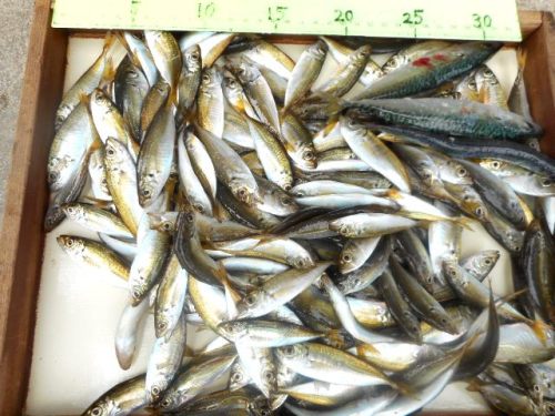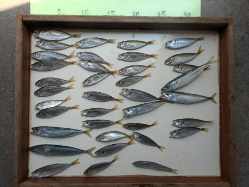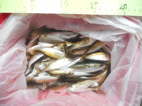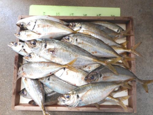 こんばんは。吉川釣具店です。遅れましたが6月19日の釣果です。今日は朝から霧雨の様な雨が降り続いており、釣り人は少なかったです。そんな中で雨天、曇天時には活性が上がるのは過去の実績で証明されている通り、豆アジ、サバが爆釣と言っても過言ではない程、釣れてました。お持込くださったのは京都から来られた長代様ざっと豆アジ:150匹、サバ:50匹とのご本人談です。お土産が出来ておめでとうございます。本日のお持込は長代様の一件だけでした。ありがとうございました。明日以降の釣り対象にはアジ、サバ等の回遊魚を忘れてはなりません。釣果が楽しみです。そして旬のキスも潮の濁りで活性化が期待されますね。天気予報、特に気温、降雨状況を確認の上、お出かけください。新鮮な餌を準備してお待ちしております。