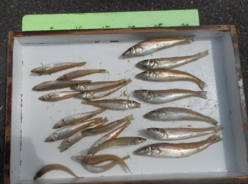 吉川釣具店です。おはようございます。6月8日の日記です昨日は思い出に残る魚釣りを体験した皆さんが喜び勇んで釣果をお持込くださいました。皆さんの満足気な顔を拝見しまして、この満面の笑みはどこから来ているのかな?とふと思いました。釣った魚の大きさではないでしょう。釣った魚の数の多さでもないでしょう。釣った人だけが感じた感動の大きさから来る笑みではないでしょうか。皆さんの表情を見て小学生の頃、家の前の川で初めて鮒を釣った時の思い出と感動が蘇りましたネ。それでは釣果写真をご紹介します。いつものアジ、サバ、いわし、キス以外に根魚のガシラ、メバルも釣れていましたね。トップバッターは吹田の刀祢様親子シラサを餌にガシラ、メバルを釣られました。お子さんの落ち着きに比べて、お母さんの喜びは尋常ではなかったです。(失礼しました)近隣の防波堤からの大人顔負けの釣果です。続いて神戸市のマツウラ様チヒロ君(3年生)、リュウノスケ君(1年生)です。納竿間際に釣れたベラに驚きを隠せない様子でした続いて吹田の佐藤様。キスがすごいですね。場所が良かったと謙虚な気持ちで感想を仰ってました。最後は大阪の伊庭くん、塩谷くん、田中くん20cm超えのガシラを3匹を含み、大漁です。餌はシラサです。サビキはアジ、イワシも釣れていましたが子サバが多かった様で皆さん苦戦されてました。本日は定休日で11時迄の営業時間ですので宜しくお願いいたします。