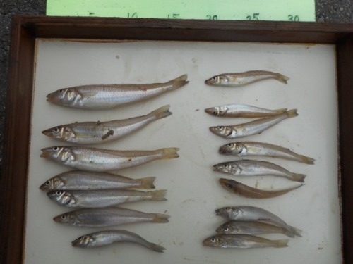 おはようございます。吉川釣具店です。近隣各地で豆アジの釣果が目立ってきましたね。今朝、7時に須磨千守防波堤の釣果情報のチェックに出かけてましたが。。。やはり釣れてました。三人の釣り人は入れ替わり立ち代りアジばかりを釣り上げてました。釣れるスピードは投入して1、2回サビクと1~3匹が釣れると言った具合でした。見ていた範囲ではサバ、イワシは掛かっていない感じでしたね。それから一雨毎に成長して、サイズアップしていくのが楽しみなのですがアジも学習しますからどれだけ私達の前に姿を見せてくれるか、神のみぞ知るといった所でしょうか?さて、釣果情報です。やはり、キスとアジの釣果が多いですね。サビキ釣りにイワシ、サバ、メバル、グレも掛かりますがやはり、食べて美味しい今のサイズの豆アジが欲しいですよね。大阪からお越し頂いたTさんが孫の食育の為に釣りに来たと爺馬鹿ぶり(失礼)を発揮してお持込頂きました。釣果を約束して釣行したら釣れない場合が多いのですが無事に約束を守れ面目を保てホッとしましたね。そしてキスの釣果。釣り人は大阪のSさん写真は13匹ですが途中経過はどうだったのかお聞きしますとリリースしたピンギス、カレイ、コチ、ハゼの小物に惑わされたと仰ってました。そこはベテラン釣り師のSさん。過去の体験値から良型だけを狙う方法を色々と駆使したとの事でした。さて、休日の狙いですが。。。。キス、サビキが数狙いではダントツ一番ですね。根魚を日中、暮れてから狙うのも良いですね。そして夜釣りではアナゴ。営業時間の関係で釣果写真は少ないですがじっくりと狙ってみたらいかがですか。では、週に一回しかない貴重な華金を楽しくお過ごしください、当店のホームページは以下の通りです。http://outdoor.geocities.jp/yoshikawanana/index.html
