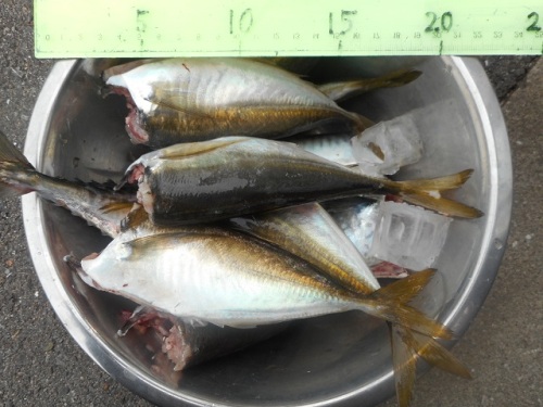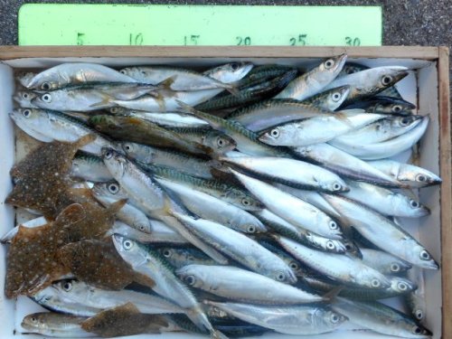 おはようございます。吉川釣具店です6月23日の日記です昨日は定休日で朝から中央市民病院で検査でした。8時半に病院着で早々に採血からスタート。注射針も慣れたものでチクッとした痛みが快感に繋がるのは我ながらちょっと危険な性格かもしれないと反省。その後、胸/腹部全体のCT検査。静脈から造影剤を注入して2回程、トンネルを出入りして、あっけなく5分程で完了。大腸下剤検査の苦痛、手術後の痛みに比較したら蚊に刺されるより楽な検査です。検査結果は来週、判明します。しかし、不思議と一抹の不安もありませんのでご心配なく。余談が長くなりましたが釣果情報ですアジは朝から出かけている方の方が数は多いですが日中でもサバ混じりで釣れてます昨日も日があがってからもアジは釣れておりました。厄介なのはボラ。サビキのハリスが太くても糸切れのトラブルに合いますよね。玉網を持参すれば掬えると思います。本日は調理師と仰る方がボラの刺身を食する為に出かけられましたよ。アジの写真は大阪のMさん8時頃からの釣果です。数えられませんでしたがざっと見で3桁、いるのではないでしょうか。。今までのブログにも釣果をアップしていますが良型のキス、ベラも釣れてます。ベラ:6匹キス:20匹コチ:13匹垂水のてるさんの釣果です。餌は石ゴカイ。コチも煮つけにしたらキス、ベラよりも美味しいのですよ。グロテスクな恰好とヌメリ、トゲが扱いずらいですけどね。では、今日も良き一日でありますように。。。