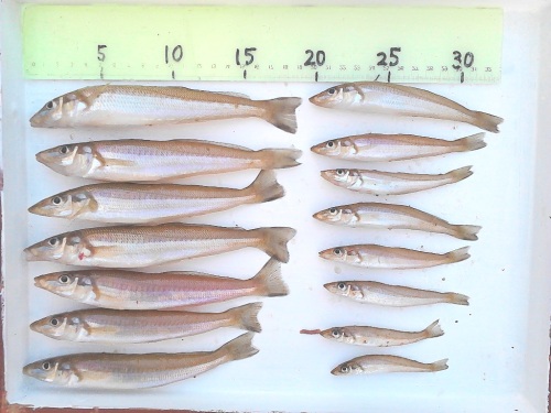 こんにちは。1月6日の日記です。昨日、中央市民病院にガン手術後、一年を経過した種々検査結果の診察に出かけてました。結果はがんの兆候は無し。ホッとしたのも束の間。ドクターから気になる事が一つとありますと切り出されたのは検査の度に血が濃くなっており、検査要のレベルだとか。又、来週、血液内科受診となりました。血の気は多いけど血が多いとはこれは何故?そういえば運動をサボり、食生活も乱れ、ここ2ケ月間で体脂肪が3Kg増えてたのも影響があるかも?皆様も後悔先に立たずで適度に健康に留意され早めの検査をお勧めします。さて、釣果情報です。各地共、厳しくなっている状況ですが須磨海岸は根魚(メバル、ガシラ、アイナメ)、キス、カレイ及びサビキでのイワシ、ガシラ、アイナメです。お持込くださった写真をアップします垂水のIさん根魚狙いでマムシとシラサを使い分けでご覧の釣果です。勿論、小さ目はリリースしています。テトラ際、防波堤の際を丁寧に探ったそうです。もう一歩、下に沈めるのがキーワードだと仰ってました。キスは健在ですね。皆さんの強敵、現る!大阪のNさんです目を見張るサイズはいませんがこの匹数は今の時期では見事な成果でしょう。ご本人も良型を狙ったけどこのサイズばかりで残念だけど匹数には満足だと談でした。尚、須磨海岸は2月末まで神戸市の整備事業の一環で遠浅工事が動き始め、砂利運搬船が作業しています。釣りは可能ですが駅前の防波堤の沖合で砂を投入してます。完成の暁には砂浜から沖合100m先迄、水深が2mの遠浅になるそうです。(現在は30m先迄が水深2m、その先は5m)遠浅工事は須磨浦漁港東防波堤から千守突堤西防波堤までだそうです(約0.4Km)。神戸市によると遠浅の海岸は魚が集まる藻場が形成されやすく地元の漁協も整備に同意しているとの事である。今の所の情報は以上の通りですが新たな情報が入手次第、お知らせいたします。