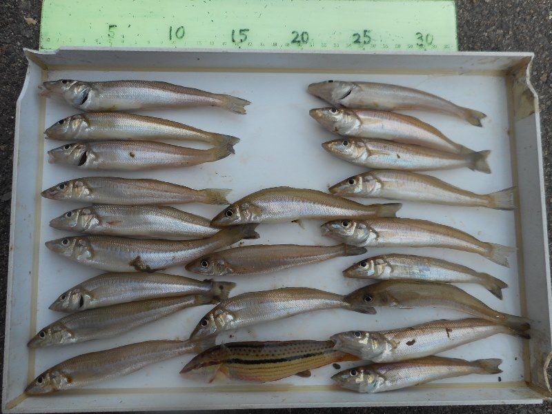 吉川釣具店です有難い雨です。海に栄養を運んでくれるんですから。これで回遊魚も活発に成り、それを追って。。。釣果情報です。まずは西宮のNoRi様。コメントを頂いてますので抜粋をアップします(ご本人からも承諾を頂いてます)******************************【日時】9月25日(日) 6時〜14時【釣方】ワインドロッドでのちょい投げ 自立式シンカー イシゴカイ【釣果】キス 11センチ〜17.5センチ 18匹 チャリコ16センチ2匹 ベラ15センチ前後3匹 鯵14センチ1匹 テンコチ14センチ1匹 その他針がかりの良かった小さい子達はリリース【 備考】某ポイント離岸流が綺麗にあったのでそこをメインに攻めて距離30メートルから 40メトルでやっとポイントを発見。 13時から14時前までは一投一匹の地合いに入りました。(お陰様で昼食抜き 汗) ベランダでのエアシンカー(自立式天秤)は高相性! 岩場周りとシモリをガンガン攻めたのにロストなしです! 普段は餌取り対策で餌を小さめにしますが、昨日は垂らしがあった方が食いが良かったです。写真を以下に添付します。妻と子供達と一緒に美味しく天ぷらで頂きました。豊中の有岡様キス8匹、ベラ5匹、チャリコエサは石ゴカイ初登場です。尼崎の角様珍しい、変な魚を釣ったり、話題作りには事欠かない角様ですが今回はえつ!こんな場所で釣れたのですか?と、目を疑う所で釣ってくれました。時には遊び心を持って未知のポイントを探ってみるのもいいかもしれません。大阪の吉村様釣果は二の次でマイペースで純粋に須磨の釣りを楽しまれています。久しぶりに釣果をお持込みくださいました。寝屋川の原田様22cmを頭に22匹の釣果です他の人も20cm超えが上がっていたそうです。又、釣り場で知り合った方は29cmを頭に良型を数匹、釣られていたとか。ご覧の通り、須磨海岸ではキス、アジ、サバ共、まずまずの釣果です釣れないと言う方は当店でお尋ねください。