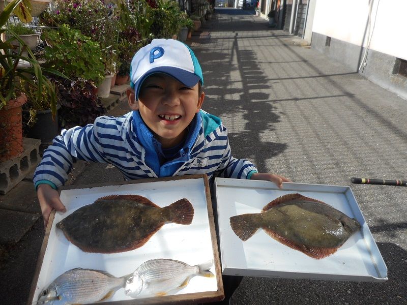吉川釣具店です昨日、ジムで体成分を計測したら脂肪量は増、筋肉量は減、結果、体重が減少しておりました。私自身は糖尿病対策で筋肉を付け、体重を増やしたいのですが上手く行きません。人には厳しく、自分に甘くが仇になってます。さて、昨日の釣果情報です。須磨のしんちゃんが投げでカレイ(25cm)そしてサビキでマアジを釣られました。好漁が続いており、釣り場で声を掛けられることもあるそうです。寝屋川の原田さんもキスの釣果ですキス18cm迄を14匹。チョイ投げで全て一か所での成果です。釣れないと嘆きの声が聞こえてきてますが居るところに居るんです。大阪のYさんは根魚狙い。ガシラ、カワハギを大漁です。餌はシラサ、マムシを使用されました。仕掛けは胴付き仕掛けです締めは大阪の宮島様親子圧巻のカレイ34cm。抱卵で肉厚のカレイですそして26、24cmの小鯛も2匹。今日は良い夫婦の日ですのでお二人で酒の肴にされるのでしょうか?明日、勤労感謝の日は雨の予報が消えていましたね。須磨海海岸防波堤、砂浜からの釣りをお楽しみください。