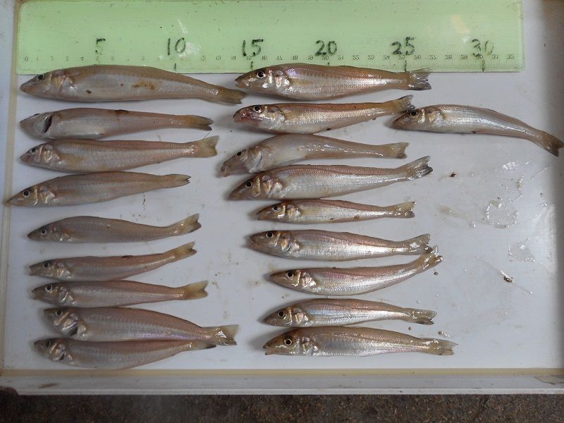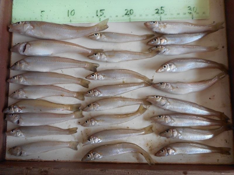 吉川釣具店です。台風接近の予報で近隣の荷物、野菜、花の退避でたっぷり汗をかきました。汗をかいた勢いでジムで軽く、汗を流してきました。と、言ってもストレッチで今日は許してやりました。では、釣果情報です今日は朝から千守突堤でアジが釣れていました。サイズ的には二種類の回遊があるみたいで、まだサビキの号数は2号までで良さそうです南蛮漬けに最適ですが大きくなりませんね。釣果写真です。先日お越しくださった長谷川様からコメントをいただきましたのでご紹介します*******************************イシゴカイ500円分でキス狙い行きましたが最終、海釣り公園よりさらに西まで行った為帰りは釣果報告せずに暑さに負け帰りました。朝一、赤灯台近くでテンコチとチェリコ多数で駅前L字に移動。こちらでようやくキスの顔が見られました。15,6cmでしたがなかなか太っていて良い引きでした。その後海面までマゴチ二匹をバラしました。すぐに海水浴客が来たので漁港よりさらに西へ移動しましたがゴミがひどく釣りには向いていなかった状態でした。さらにベランダ周辺でもキスを狙いましたがチャリコ連発でたくさんの餌を消費していまい海釣り公園よりさらに西側へ移動。ようやくこちらでキスの連発でした。その段階で既に餌を使いきり納竿となってしまいました。自宅に帰り早速捌いてみましたが、まだ15cmに満たしていない個体のいくつかが卵を持っていました。水温上昇が今年はなかなか上がりませんでしたが夏前に一気に上昇した事で15cm以下の小さめのアベレージが成長不足だった何人の方がお話しされていました。また明日から台風で釣状況は変わってしまいそうですね。また、お伺いする際はよろしくお願いします。***************************そしてもう一件、須磨の今野様からもメッセージを頂いてますのでご紹介します。***********************************お世話になります。須磨在住の今野です。昨日(27日)の釣果(豆アジ)です。面倒だったので数えていませんが、恐らく70匹~80匹位でしょうか…6時~9時過ぎ迄の釣果です。今年は少し小さめですかね⁉南蛮漬けと唐揚げで頂きました。(単身赴任なので、さすがに南蛮漬けはまだ残っていますが…)明日は早朝から台風12号の上陸予定です。万全の対策を打ち、迎え撃ってくださいませ。