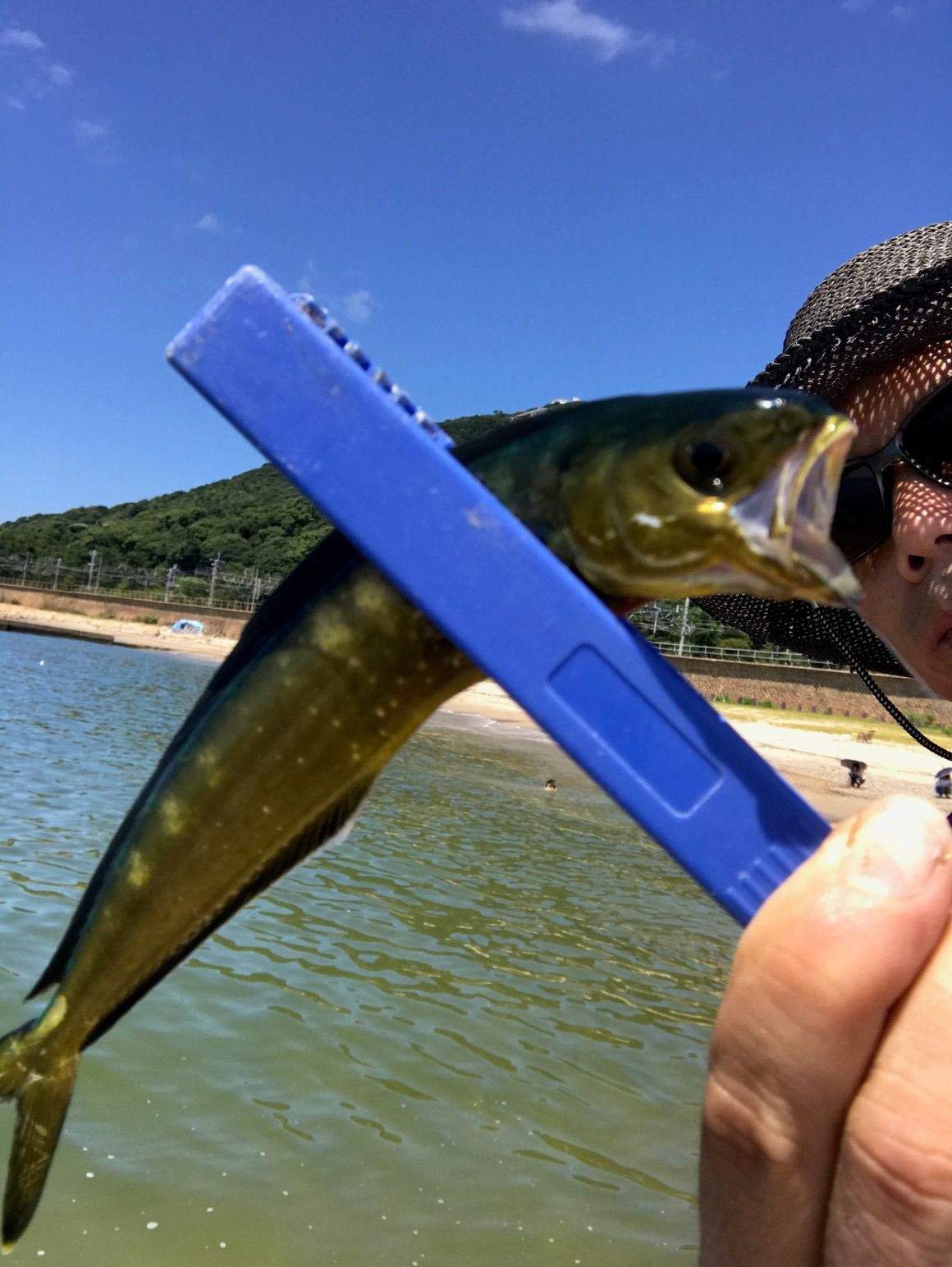 吉川釣具店です7月22日の日記です。朝からアジ釣りのお客様が大勢、来られてます。親子釣れの方が目立ちます。親子のふれあいを釣りを通じてお楽しみいただければと思います。短時間でそこそこの魚も釣れますしね。お客様からメッセージを頂きましたのでご紹介します。昨日の釣果です。*****************************本日、〇〇のキスは、数は出ませんでしたが20センチ弱の型がつれました。△△エリアはほぼ人がいない状態で、釣果はピンギスがボチボチ(多分15くらい)で、それ以上にコッパセイゴが多数釣れました。引きは楽しめますね。*****************************話しは変わりますが下記、写真の魚の名前が分かりません。尾に特徴があります。ご存知の方がおられましたらご教授をお願いします。今日も良い一日でありますように。