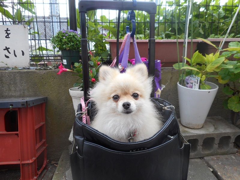 吉川釣具店です7月18日の日記です。残念ながら釣果写真はありません。愛犬ココのバギーを使っての散歩風景です。2分程、歩きますがね。