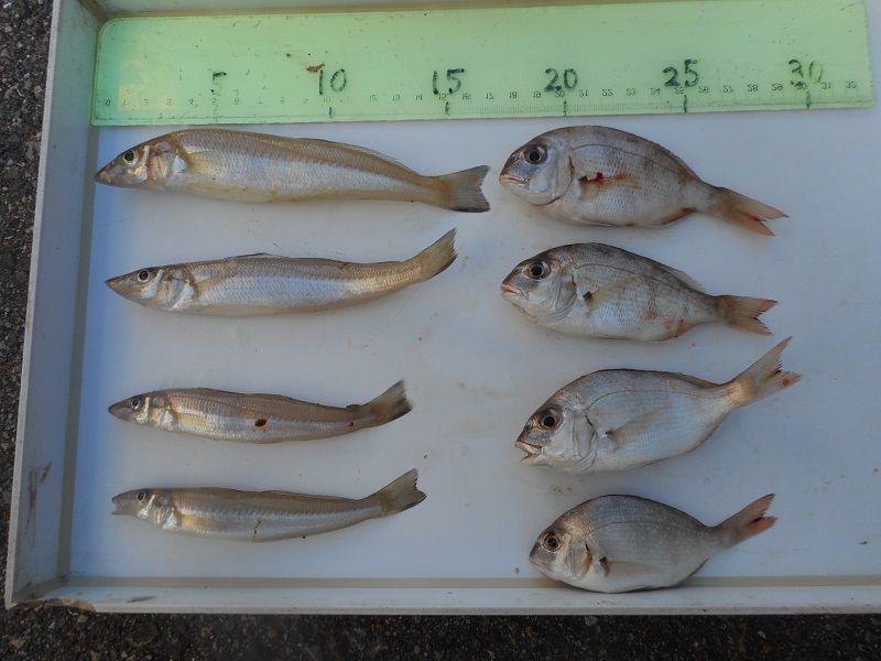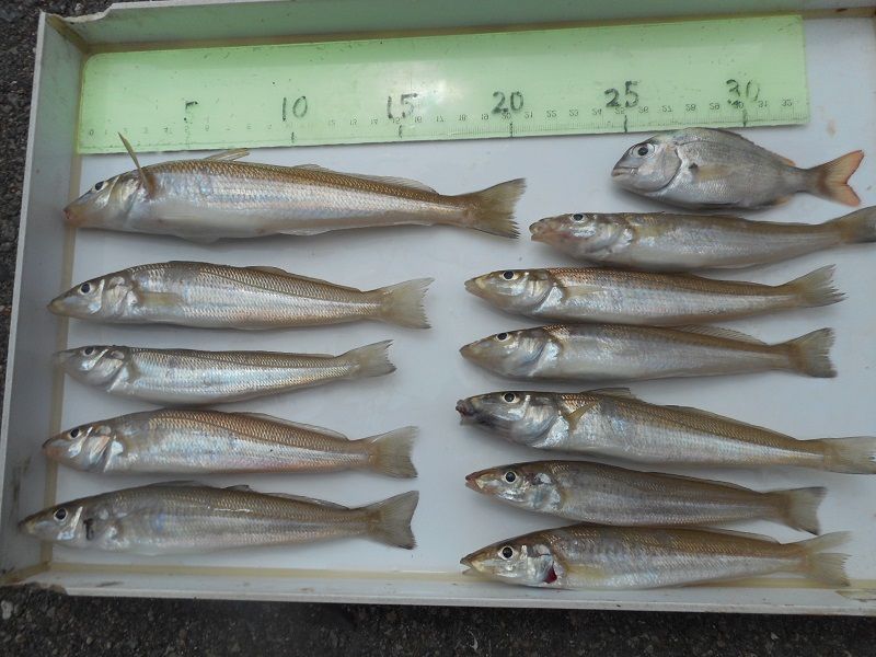 吉川釣具店です遅れましたが9月16日の日記ですタイトル通り、昨日も色々な魚がクーラーを賑わせておりました。多種少量の様相の一日でした。特筆すべきはヘダイ。マダイなどのように赤くなく、チヌのように黒くもない、銀色でやや平たい形状の体を持つタイです。刺身、塩焼、フライで食べたら淡白で美味しい魚ですので是非、お試しください。今年、須磨では初の魚です。アジは朝方、夕方に釣れていました。豆アジと中アジが混在してます。日が上がってしばらくしたらカタクチ、ウルメイワシの大きな群れが来ていました。これから成長するアジも期待の星です。イワシを追ってシオ(カンパチの幼魚)も回遊してました。伊丹の村上様、宝塚の森様ヘダイ28cmを頭にご覧の釣果。キスは大西様、黒原様キス17cmを頭にご覧の釣果型は悪くありません。同じくキスは寝屋川の原田様20cm頭に9匹。好ポイントを無念にも外部要因で立ち退きしてもこの釣果。砂浜近くでヘダイも釣れ、ピンギスも波打ち際に居たと仰ってました。明日(17日)は敬老の日で休日ですので通常通りの営業です明後日は朝10時迄の営業とさせていただきます。