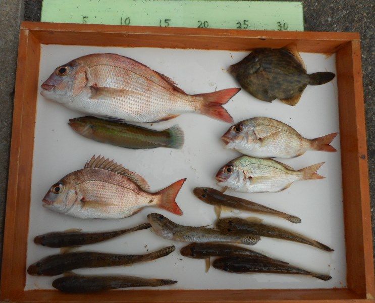 吉川釣具店です。11月22日の日記です。下記の釣果は21日(水)の釣果です。本日の釣果は明日、アップします。まずは須磨の木村様、田中様の釣果です。サビキでアジ、グレ。チョイ投げでキスの釣果です。忘れられているアジも22cm級が釣れてますよ。キスも食べごろの17cm前後でした。そして最近、釣行の度に50匹以上の釣果を上げている大阪のYさんアジ22cmを頭に70匹です。飛ばしウキ仕掛けでサビキはがまかつ。真鯛も食ってきてます。今の季節は五目釣りで色々な魚が一番、釣れるシーズンです。人間には少々、寒くなりましたがネ。カワハギも既に顔を出してますので鍋料理、煮付けにどうぞ。カレイも忘れないでくださいね。