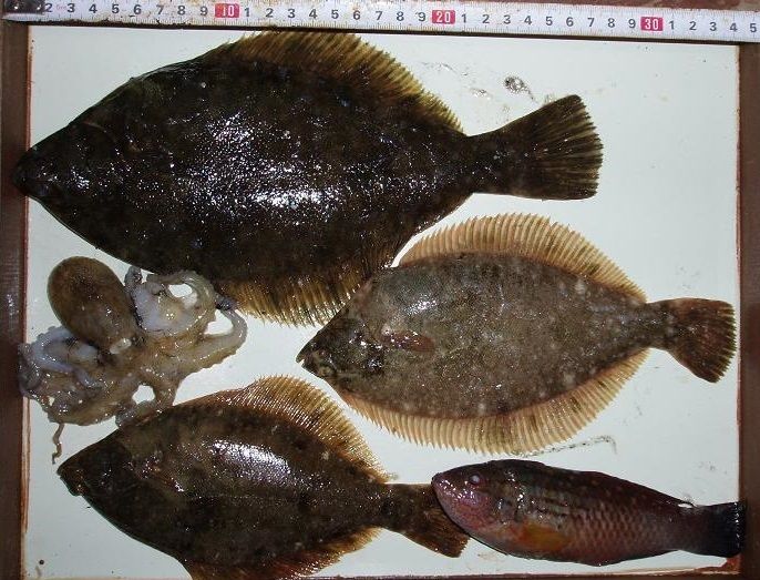 吉川釣具店です。最近は一種の魚が大漁と言う釣果は少なくなり、多種少量の五目釣りが主流になってきてます。地元の人がアジ、そして太刀魚、一文字でのガシラ、ベラを数、釣られているのが救いですかね。それでは昨日、一昨日の釣果写真です。寝屋川の原田様石ゴカイを餌に遠投でキスを釣られてます。足元が安定しない場所ですので高い所が不安な方は要注意です。京都の中川様半夜釣りでの珍しい魚が釣れました。韓国料理の「ご飯泥棒」と呼ばれるカンジャンケジャンが旨いです。吹田の西田様祖父とお孫さんの二人での久しぶりの釣行です。ポイントは須磨一文字。マムシ、青虫、シラサ、そして持参の諸々の餌を持って臨まれました。写真はありませんが夜釣りで太刀魚指3~4本 5匹アジはサビキでは早朝、夕方。出来ればトバシウキの方が数は釣れます。餌付けでの一本釣は日中でも釣れます(サシアミの餌)釣り対象魚をざっとあげますとカレイ、ガシラ、メバル、キス、ベラ、真鯛、チヌ、ヘダイ、アイナメ、セイゴ、コチ、ハゼ、アナゴ、太刀魚、カワハギ、アジ釣り方、ポイント、餌、時間帯が異なりますが本命の魚より外道の方が釣り味があり、美味しい魚が釣れますから釣りは奥深いし、魅力は尽きませんね。明日は月曜日で定休日ですので朝11時迄の営業とさせていただきます。