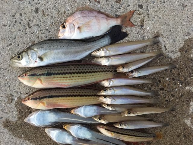吉川釣具店です本日、二回目の日記です。11月24日の釣果速報です。前置きなしで明石のオガタ様投げ釣りでの成果です池田様防波堤から一文字に向けて投げ釣りでの成果です。写真はお一人での成果ですから驚きです。餌はマムシ、青虫写真では分かりずらいですがアコウ32cmガシラ23cmベラ22cm、真鯛21cmキスそして寝屋川の原田様はキス20cmを頭に16匹ハゼも良型です。餌は石ゴカイです五目釣り全開ですよ。アジも防波堤から釣れてますのでお子様と一緒にシーズン後半の良型アジを味わってください。いつ、釣れなくなるかわかりませんので、、、、