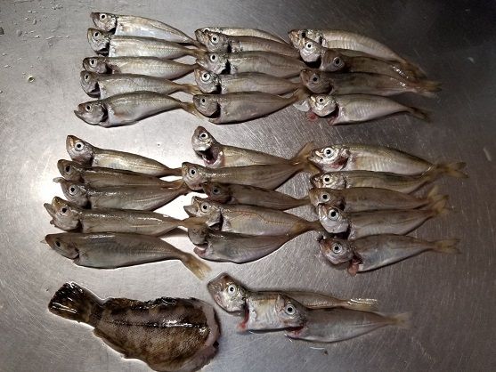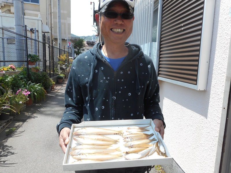 吉川釣具店です5月18日の日記です。東からの風があり、遠投は難しい状況ですが休みしか釣行できない強者が須磨に来られてます。当然、外部環境に影響はされますが、そこは勝手知ったる須磨の海ですのできっと、釣果を持参してくれると確信しています。昨日は須磨の海を熟知している山本様が奥様と防波堤でアジ釣りに行かれおすそ分けを頂きました。サビキと餌での一本釣です。サイズは20cm強。新鮮な魚は刺身が一番と思ってますので酒の肴に頂きます。南蛮漬けサイズの豆アジも早く来てほしいですね。チョイ投げではキス。防波堤からではガシラ、アイナメ、ベラ、カワハギが釣れてます。尚、キスは小さめのハリ(キス針の6号)がお勧めです。それでは釣果と共に、満足した、楽しかったと思える一日をお過ごしください。