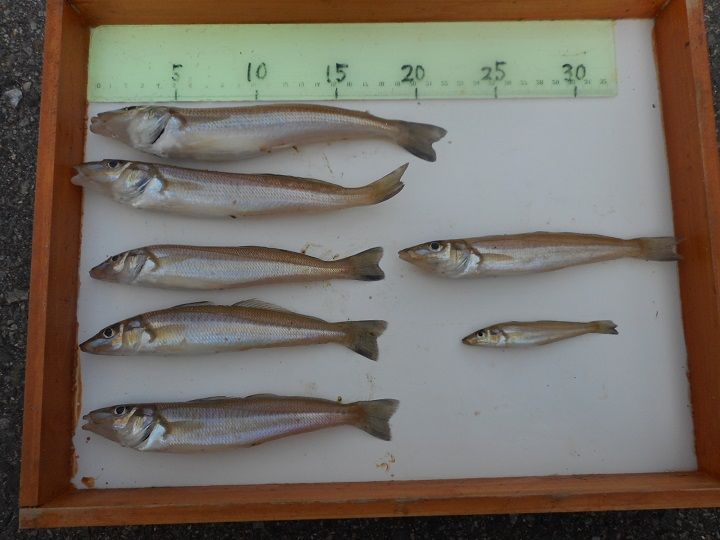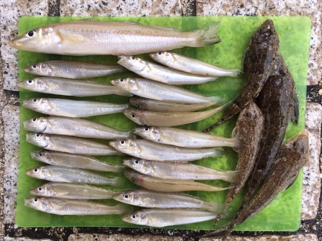 吉川釣具店です。9月21日の日記です。雨はほとんど降らず、涼しい釣り日和でした。天気予報は当たらずの涙の土曜日でしたが釣りへの欲求を高める良い時間だったと思いましょうそれでは釣果情報です。昨日、キス釣りに行かれたSさんから日記を頂いております。一部編集してご紹介します。生の実体験ですのでご参考になれば。************************本日も新鮮な餌ありがとうございます最高気温もやっと30度を下廻りだし水温も25度前後に落ちて来たので、いよいよキスのシーズンインではと思い釣行しました、まずは〇〇から釣り開始沖はあたりなし。シモリと波打際はチャリコ、ふぐ、ピンキスの嵐、■■から西浜は全く餌取り無しで来ればキスですが、ピンキスが先に餌を突きに来る為、型が出にくいです、ピンキスだけを狙えば5、60匹は楽に釣れるでしょう、場所をかえて東の湾内のチョボでも竿を出しましたが、餌取りだけでキスの顔は見られずでした、2時前から雨がぱらつき始め雷も出始めた為、納竿にしました、途中ピンを掛けた後にガシガシしたアタリが有りましたが残念ながら針ハズレ、重量感わあったのでコチかもしれません、キスもこれからが本番ですまた五目釣の季節でも有りますので、楽しい釣をしたいものですね。本日の釣果、ピンキス中心に21匹、テンコチ、チャリコ、ふぐ、チヌ稚魚、の五目釣でした。*******************************本日、サビキ釣りで須磨のみやびちゃんがご覧の釣果。先日、呑ませでスズキを釣った釣りセンス抜群のお嬢さんです。
