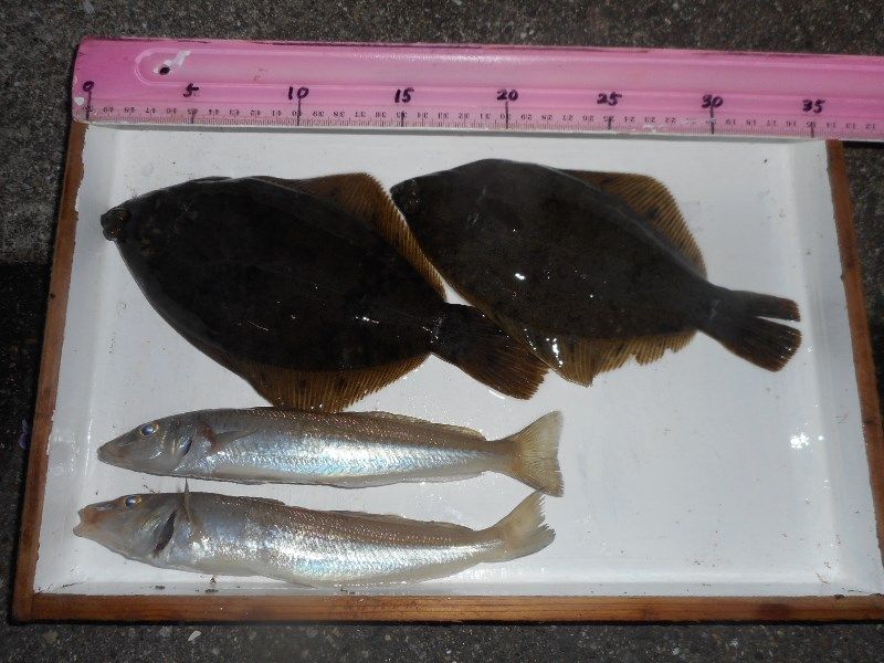 20cmオーバーのキスを含み、25cmのカレイ2匹です