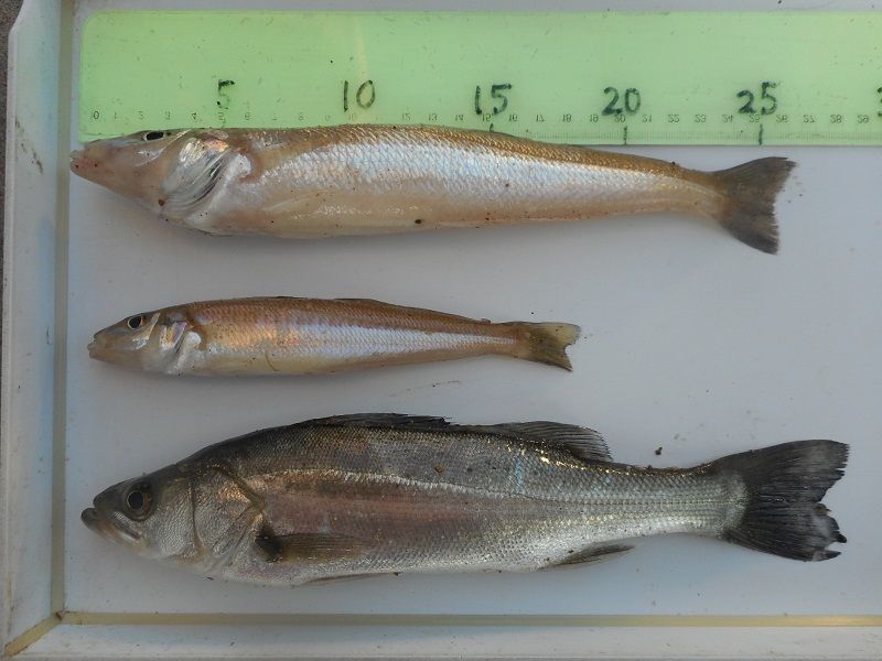 下のセイゴが大きすぎるのでキスの大きさがかすれがちですがAさんの考え方、言動がもたらした粘りの一匹ですね。