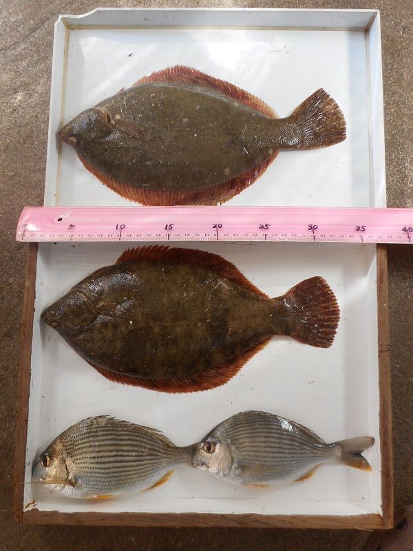 管理人のおおざっぱな計測で申し訳ありませんが35cm±1cmのカレイが2匹